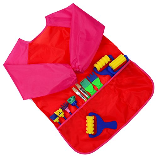 Coming with a palette, made of durable plastic, 6 round wells, 4 irregular wells and a thumb hole, convenient for mixing watercolor, paint and more. Red color paint apron, approx. 47.8 x 36.1 cm/ 18.8 x 14.2 inches in dimension, protect your children's cloth from getting dirty.
