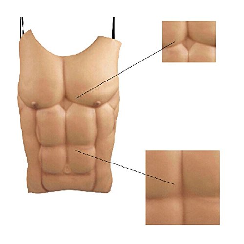 Description: Foam male chest Material: Polyester & Microfiber Eva foam Size: free size Color: As picture Size: about 42cm (L) X 38cm (W) PACKAGE: 1 X Halloween Fake Muscle Ches