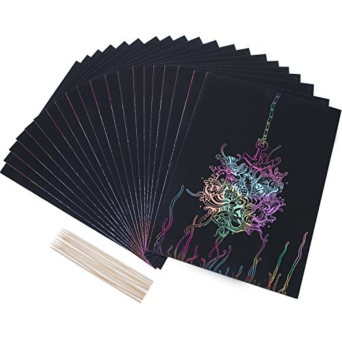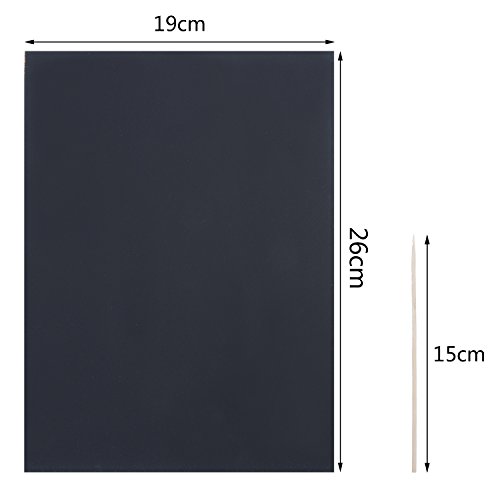 20 sheets scratch boards scratching papers painting papers with 10 pieces wooden stylus sticks, 19 cm x 26 cm, black