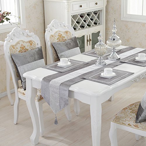 32 x 210cm Velvet Diamante Table Runner with Tassels Grey Velvet Bling Table Runners Wedding Party Table Decoration