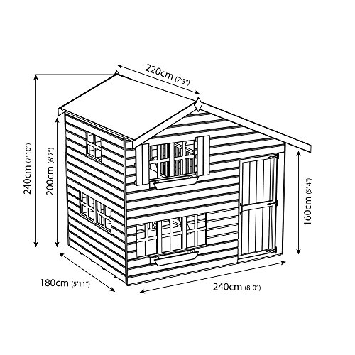 This 8 x 6 Waltons Honeypot Bramble Wooden Playhouse features two storeys. The playhouse is EN71 Safety Tested, meaning that the Georgian windows are 100% shatterproof, the timbers are planed and rounded to prevent splinters and features a child safe door with a 12mm gap to prevent trapped fingers.