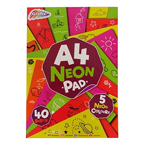 This fun and well made A4 Neon art notepad by Grafix measures 297mm x 210mm (11.7" x 8.3"). Comes with a colourful protective front and back cover. Inside there are 40 sheets of 80gsm fluorescent paper in 5 different colours. Colours include Green, Pink, Yellow, Dark Blue and Orange. Padded on the short edge (210mm) for easy individual sheet tear out if needed. Perfect for all arts and crafts projects, suitable for drawing, colouring, cutting, sticking and creating.