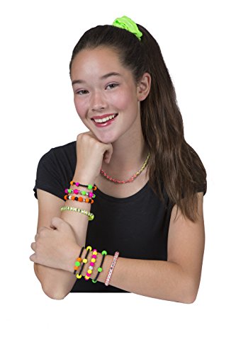 Create 10 loud and bright accessories including earrings, bracelets and necklaces. The DIY jewellery kit has easy to follow instructions, stick, wrap and wear. Contents includes: neon, black, seed, jewel and faceted beads, elastic, earrings, needles, jump rings, chain, bangles, gems, floss and cord.Age 8+