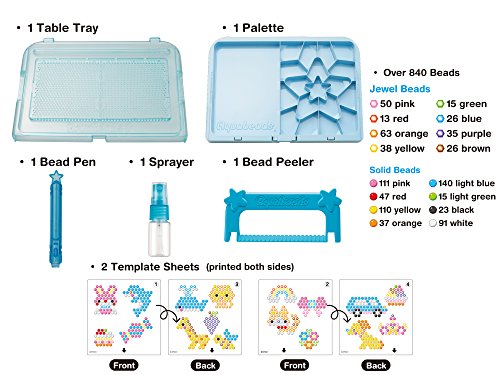 The set comes with a handy place to store all of your beads, a bead peeler, and template sheets as well as a bead pen and sprayer. The Beginners Studio is suitable for those who have just begun their Aqua beading adventure � it even comes with two double-sided template sheets to inspire you.
