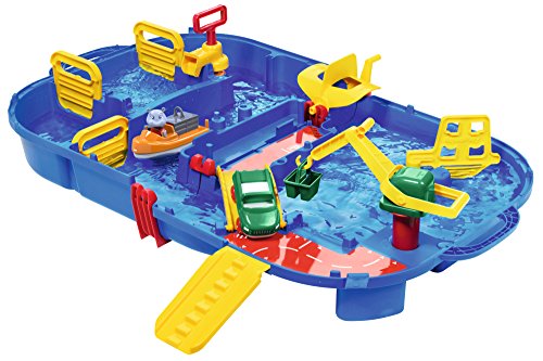 Let Wilma the Hippo take the container boat out for a journey through the popular lock system by using the pump. In the harbour the crane will assist you to load the container on the amphibian truck. By turning the paddle wheel the water flows through the canals, a playful way of educating how water moves. There are endless of playtime and once ready - it's easy to fold the set together to a suitcase and stove away. There are indefinitely expandable options, either by other Aquaplay sets or extensions!