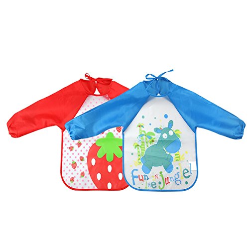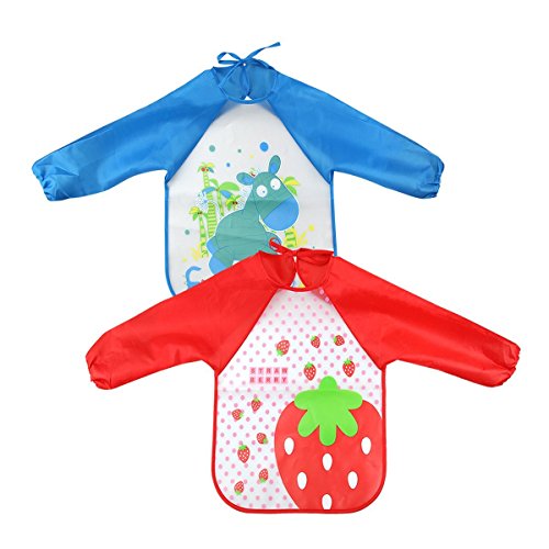 About the Product: 1. Perfect design with long sleeves for better protection. 2. Waterproof EVA and soft polyester material, easy to clean and be reusable. 3. One size fits kids 2 to 6 years old. 4. Adjustable velcro closure design, keeping the stains away. 5. Cute and colorful carton pattern, kids accept easily.
