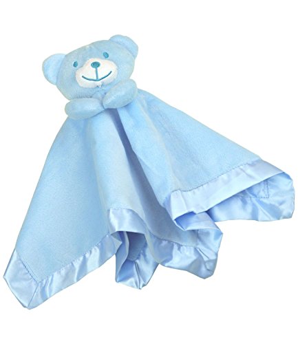 A lovely little teddy bear baby comforter, soft velour on one side and shiny and silky on the other. Measuring approximately 38 x 38cm and available in pink or blue. Suitable from birth and washable.