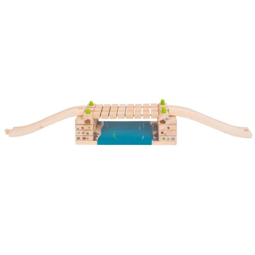 Out in the wilds of the country, young explorers will love stumbling upon this wooden, rustic-looking bridge. They'll love the 'clickety clack' sound as the train makes its way from one side of the bridge to the other, and will return for more fun again and again. Adds a great interactive feature to any wooden train set! This three piece set comes complete with the sturdy clickety clack bridge with a stream below, and two pieces of ascender and descender track. Encourages creative and imaginative play. Most other major wooden railway brands are compatible with Bigjigs Rail. Made from high quality, responsibly sourced materials. Conforms to current European safety standards. Age 3+ years. Height: 95mm, Width: 255mm, Depth: 120mm. Consists of 3 play pieces.