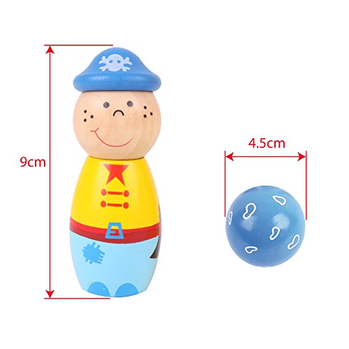 These cheery Pirate Skittles love nothing more than being toppled over, straightened up and then knocked over again and again! Six pirates are ready and waiting for the ball. Beautifully crafted from wood, this classic game is great fun to play either on the table or the floor, indoors or outdoors, and are ideal for extended play sessions between family and friends. The cheery pirates also make fantastic decorative items for the play area or bedroom. This 7 piece game set includes 6 skittles and 1 wooden bowling ball. Other themed skittles are available including Fairy, Duck, Farm, Frog and more! Helps develop dexterity and co-ordination. Made from high quality, responsibly sourced materials. Conforms to current European safety standards. Age 2+ years. Height: 80mm. Consists of 7 play pieces.