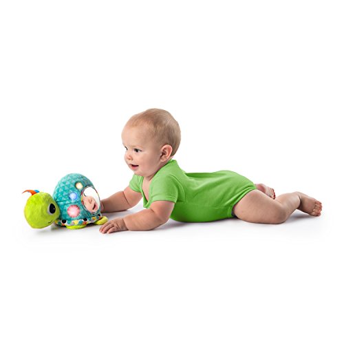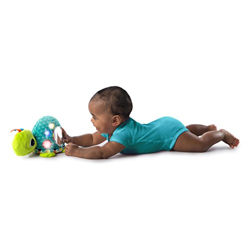 Fun Comes First!™ Add plenty of fun to tummy time with the See Me Shine Turtle™ from Bright Starts™. With a variety of activities to keep baby engaged, this adorable plush turtle is sure to be baby's best friend and is perfect for tummy time. With just a tap, three intriguing lights dance to 8 happy melodies. Babies will shine with delight when discovering themselves in the baby-safe mirror. Babies can't resist keeping their fingers off the tactile satin ribbons. Recommended for ages 3 months and up.