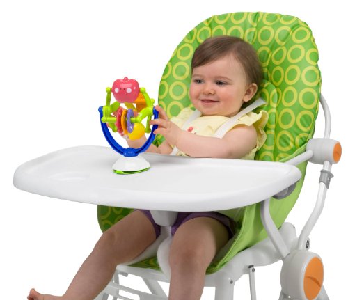 Musical Fruits is a colourful electronic toy for the highchair and mealtimes. Suitable from 6 months. As your baby turns the fruits; each one has different colours, shapes and surfaces. Offers different activities to help develop manual senses. Rolling the fruits activates a fun tune. The toy can be secured to the highchair tray or table top using the suction pad. Musical Fruits highchair toy is designed to develop early Co-ordination and Musical Skills. Requires 2X LR44 1.5 batteries (included)