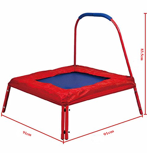Junior trampoline with easy grip handle encourages children to exercise and keep fit