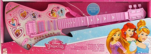 Disney Princess Deluxe Children's Kids Guitar Musical Instrument Toy. Disney Princess Pink deluxe guitar. Features; 5 Metal Strings, Shoulder strap, 3 songs and distortion Lever. Size: 54 cm x 21 cm x 3 cm approx. Requires 2 x AA batteries not included. Excellent gift.
