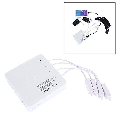 It can charge 4 battery, 1 remote controller (USB port) and 1 smart phone (USB port) simultaneously.