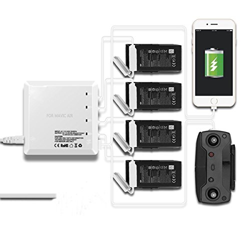 DJI Mavic Air Multi Charger [UK Stock], 6 in 1 Multi Batteries Parallel Simutaneous Charging Hub, Smart Rapid Balance Parallel Charger Dock for 4 Mavic Air Flight Batteries + 1 Remote Controller + 1 Smaratphone/Tablet (White, UK Plug)
