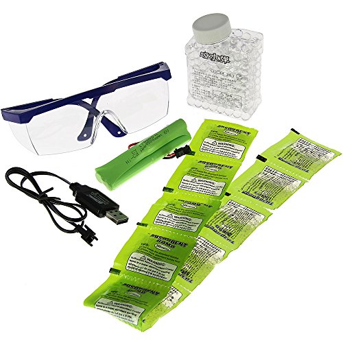 The newly designed, water crystal bullet gun. The bullet's main ingredient is water polymer, safe and nontoxic. When water bullets hit a hard object, It will shatter and eventually evaporates slowly. Water bullets are not harmful to human body. But do not shoot people in the face, eyes, valuables and fragile items in order to keep safe. Buy two and play anywhere! Please use the safety glasses provided in the package.