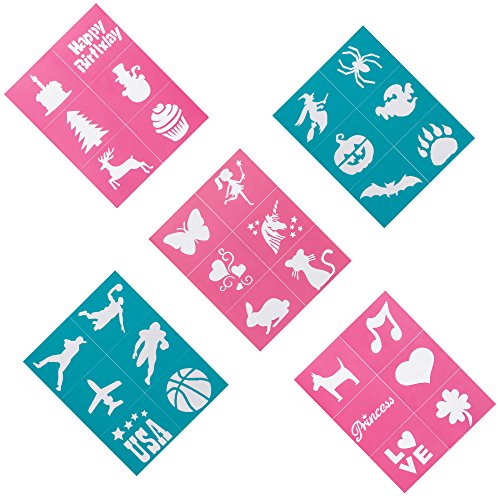 More face paint colours are provided than in other products, so you get more for your money! 30 bonus stencils are included along with 2 great quality brushes and 2 cosmetic grade sponges to help you create professional designs. The silver glitter is gel-based so will not spill, and adheres to the face and body really well for a sparkling finish.