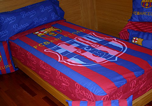 FC Barcelona stay-on, a very practical product and ideal for the fans of Barça. Set of three garments. The pillow contains a stay-on bellow for the comfort of the child, and the fitted together to punch through zip. Three garments in a comfortably that can be washed separately. The fabric of the Nordic is a 180 thread count percale sheet of composition 50% cotton and 50% polyester, quality assured. The sack is without the filling. Official license product, manufactured by montse interiors.