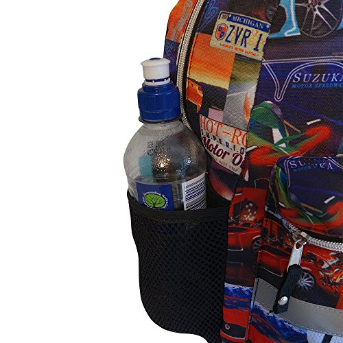 The Fenza Racing Car School Bag is perfect for little aspiring racing car drivers. Designed to be practical for school and fun for your child. The bag features padded shoulder straps, a large zipped front pocket, a good sized main compartment, drink bottle holder, zipped side pocket, an internal safe pocket and reflective stripes across the bag and on the shoulder straps. Ideal age 4- 9yrs