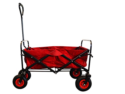 Foldable and robust hand cart in red with cross-country pneumatic tryres./b>