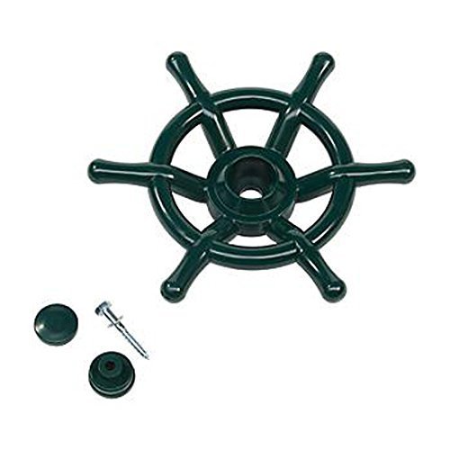 Garden Games Ships Steering Wheel in Green Free Delivery Anchors away and off we go! This great green plastic Ships Steering wheel will add hours of sailing fun to the most land locked of garden climbing frames. Your pirate will be speeding of at top speed without even leaving the garden. The Ships Steering wheel measures 350mm across and comes with all the screws and fixings needed to attach this great accessory to your frame. The ships wheel is designed to be fixed into place with one wood screw and then the specially designed cover allows the wheel to rotate 360 degrees. The attractive green plastic is strong and hard wearing and UV resistant so it would fade or become brittle when exposed to the elements. The ships wheel makes a perfect addition to any wooden frame but can also be use on a wooden sandpit or even a play house. Adding that nautical touch to your child s play equipment couldn t be simpler. Delivery This product comes with free delivery within 3-5 days. Our Carrier will contact you to arrange a 2-3 hour delivery window. Returns All of the products that we despatch are carefully inspected for quality before they leave us. In the unlikely event you receive a faulty product - we will be happy to exchange the product. Please contact us immediately with any product issues and we will be happy to resolve all issues.