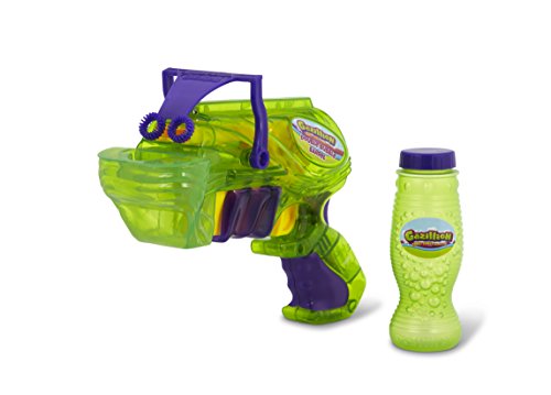 Blow double the bubbles with the Gazillion double bubble barrel blaster! simply pour solution into the spill-proof reservoir, pump the barrel to raise the dual wands, and pull the trigger to blast a double bubble stream!