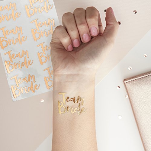 Celebrate in style with these stunning rose gold Team Bride Temporary Tattoos. Have fun with the beautiful Bride-to-be and loved ones in Team Bride by applying the gorgeous metallic rose gold temporary tattoos! Easy to apply and remove, these stunning tattoos are perfect for a special sophisticated Hen Party. The super on trend rose gold foil is sure to be loved by everyone! Each pack contains 16 temporary tattoos measuring 4cm (W) x 3cm (H).