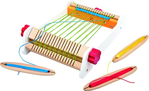 Hape - My First LoomMake the shuttles go zip and zoom as you weave your very own design. Talk about the way cloth is made. Look at different kinds of fabric. By Age: 4+ Years