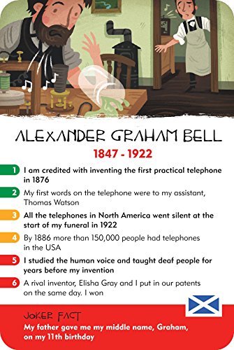 History Heroes INVENTORS, officially endorsed and licensed by the Science Museum, London: a History Heroes card game containing individual cards of History Heroes' inventors who changed our world with inventions we see and use every day. Each card is fantastically illustrated to represent the specific INVENTOR and shows their dates, their flag of birthplace and seven memorable and often moving facts about them. For example, which inventor, most commonly linked with a peace prize, was the brains behind dynamite? The answer: Alfred Nobel. It's just one of hundreds of facts in History Heroes' award winning game: INVENTORS. Did you know that Alexander Graham Bell, inventor of the telephone, only received his well known middle name as an 11th birthday gift from his father? And while most might know that Florence Nightingale was the founder of modern nursing, how many realise that she is also credited as the inventor of the mathematical pie chart? Use the game to discover 40 amazing inventors and test all the family on facts about some of the greatest inventors in history. You'll all have great fun AND learn along the way.