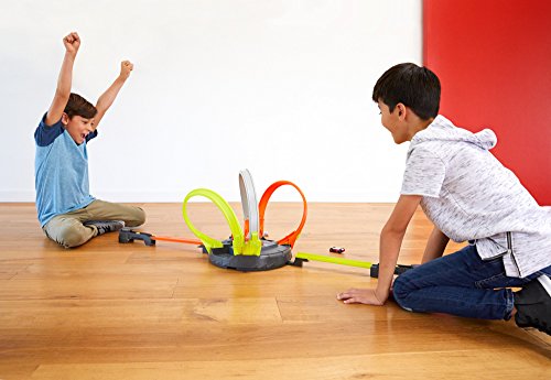 ?The Hot Wheels Roto Revolution will test your skills in a head-to-head face off with friends. Challengers strategically launch their Hot Wheels cars into the rotating set. With perfect timing you'll be looping around the set and crashing and smashing into your opponent's cars in no time! Last man standing in the loop wins! Launch into action with this interactive, strategic, skill-based track set with the fast action you expect from Hot Wheels. Includes 2 launchers and 2 Hot Wheels vehicles.