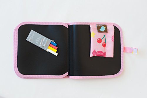 4 FREE PIECES OF DUSTLESS CHALK: comes with four pieces of dust free, non-toxic, food-safe Butterstix chalks (white, yellow, pink, blue). A special pocket houses the chalk. VERSATILE: this reusable Chalk a Color book contains 8 pages, making it the perfect toy for making stories, drawing pictures, educational activity, practicing letters, etc. The fun is unlimited. EASY TO CLEAN: just wipe with damp cloth and it looks like new. If 'ghosting' remains, a damp magic eraser will do the trick. PORTABLE: measuring 8"x8" when closed, this chalk book fits easily into a bag and can be used anywhere. It's the perfect travel companion for the airplane, car, restaurant, doctor's office, etc. WATCH CREATIVITY GROW: in an age where so much of life is digital, this book makes for the perfect fun non-digital toy. Watch as imaginations come to life in these pages. Suitable for ages 3 and up!