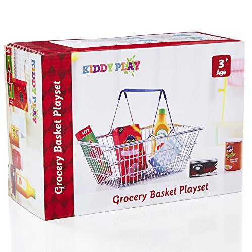 It's time to stock up at the supermarket. Children will love role-playing by filling up their metal shopping basket with the everyday essentials provided in this great set. Grab some orange juice, milk, pasta and more. Each replica piece including the metal basket is highly detailed to look like the real thing.