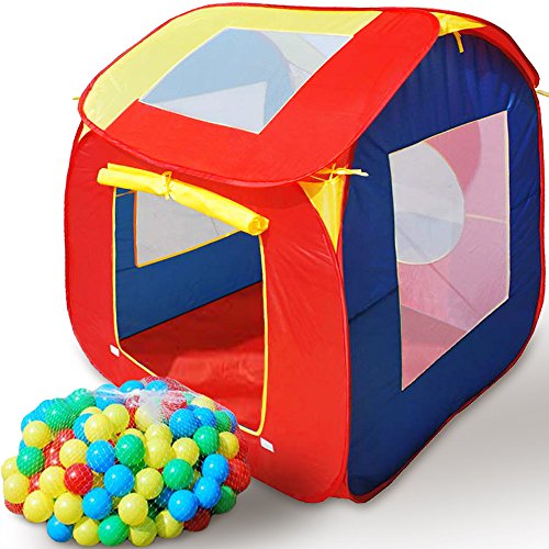 A colourful playing pleasure with large children tent and balls in different colours. The balls are filled with air and can thus swim.