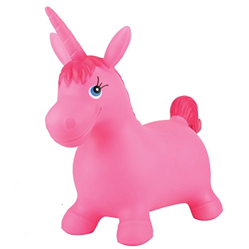 Little ones will go hopping mad for these ToyStar Bouncy Unicorn Hoppers. Unlike round-shaped space hoppers, the magical unicorns have four sturdy legs so that they’re safer and easier for kids to bounce on. They also have ears and a horn for toddlers to safely hold onto when they’re bouncing. They’re a fun way for kids aged 3 years+ to strengthen their muscles, improve balance and develop better coordination. The hoppers are made from durable PVC rubber and contain no banned phthalates or metal elements, making them super-safe to play with. Each hopper includes a pump to inflate them in seconds. Simply remove the plug from the belly of the hopper, insert the pump and inflate. Contents: 1 x Unicorn Hopper / 1 x Air Pump. Inflated size: 55cm x 26cm x 48cm. Suitable for ages 3 years+.