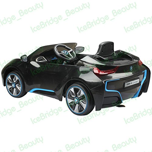OFFICIALLY LICENSED BMW i8 RIDE ON CAR. Forget all other copies on the market, this licensed i8 model is as close to the real thing as possible. 12 VOLT This 12 volt model is ready to leave other electric ride ons in the a trail of dust. Boasting two motors powered by 12 battery the car is able to hit super speeds. Outstanding Looks This official BMW i8 car boasts outstanding looks and detail. Ensure your kid is the coolest kid on the block with this head turning design. Push button start, gear stick, headlights, backlights and alloys to make it look like the real thing! Parental Remote If your child is too young to control the car, this model comes with a parental remote, allowing you to control the car for them. The remote works like a bit remote control car. Steer left and right, forward and reverse. MP3 Player Input Let your child play their favourite music through the car, simply plug in any device with a head phone socket (connector cable provided) and let the tunes play through the car's speakers. The car is made from quality moulded plastic that's built to last. Your child will enjoy hours of fun for a long time with this quality model. Available in only available in BLUE and WHITE. Button Start Music and sounds Parental Remote Control Rechargeable batteries (2x 6v 7Ah) Available in Blue and White Top Speed: 3-6km/h Foot Accelerator Front and rear lights Usage (based on constant play): 1hr Motor: 2 x 35w Charging time: 6-12 hours Max Weight Load: 30kg Approx Dimensions: 127 cm (L), 76cm (W), 52cm (H) EN71, EN61125 EU toy safety standard Small assembly required Images featured are a guide. In some cases stickers or certain panels may differ from that shown. If you're purchasing two of these items please be aware that when using the remote control every car works on the same frequency.