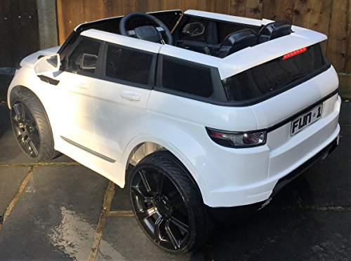 This car is going to be the must have for this year the quality is amazing and looks so realistic,with the EVA TYRE UPGRADE THAT OUT PERFORMS THE STANDARD WHEEL impress all your friends with this new Ride on Car that has been designed in the Style of the Range Rover HSE Sport, with magnetic opening and closing doors. The parental remote can be used or the car can also be driven by the normal in-car controls by using the gearstick and pedal. The parental control can operate the car in forwards and reverse gears, and also turn the steering wheel left and right. Features: Push Button start - on the dashboard, and hear the authentic engine start-up sounds. Parental remote control - The ride on car can be used with the normal in-car controls, using the pedal with the forwards/reverse gears and steering wheel, or can optionally be used remotely with the parental control. The parental radio remote can operate from up to around 20m away and controls forwards/reverse and moves the steering wheel left and right. MP3 player input with volume control - This electric car comes with a cable which plugs in to the dashboard, allowing an MP3 player or any other device with a headphones socket to be plugged in, and the music played through the car speaker. Plugging in a device disables the in-car sounds. Steering wheel sounds - The steering wheel buttons include horn and pre-set music Seat belt - This kids' car has a seat belt fitted, to keep your child safe if using the parental remote option. Working lights - Front headlights and Fog Lights and Rear Light and Fog Lights 12v of Power and 2 Motors - powerful twin motors to give it the power Opening and Closing doors - Magnetic shutting doors with a latch so that you can lock the door in place. Single Seater - Designed to look ;like it has 2 seats the car is only suitable for one person.