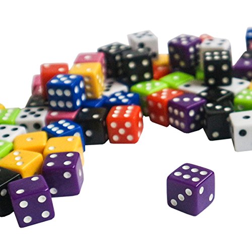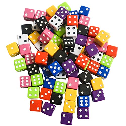 80 x 6 Sided mixed colours rolling dice (10 of each colours; blue, green, white, black, purple, yellow, orange and pink).
