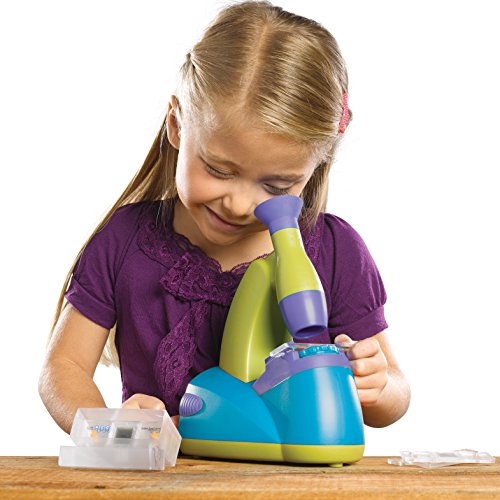 The GeoSafari Talking Microscope introduces young children to the exciting world of insects and more! Kids can examine all sorts of critters on 12 prepared interactive slides while details are spoken in fact mode or as a fun quiz game. Features 5x focusing magnifier and a light for easy viewing. Includes slide storage box. Requires three C batteries (not included).