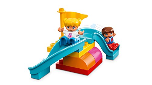 Preschool children will love to build and create amazing adventure playgrounds with this LEGO Duplo Large Playground Brick Box 10864 Setl. It includes fun LEGO DUPLO bricks, including a spinning windmill, swing, slide and a bouncy car ride.This brightly colored set of big bricks includes a spinning windmill, a working swing, 2 slides, a bouncy car ride on a spring and 2 DUPLO figures, so young children can build and rebuild a different playground every time. The packaging also doubles as a handy DUPLO storage box.