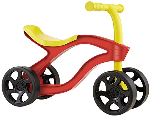 Toddler ride-on toy with a contoured seat to maximize comfort while scooting around;Rides on four sturdy wheels;Easy grip handles;Bright, engaging colors that toddlers will love;Builds balance and coordination