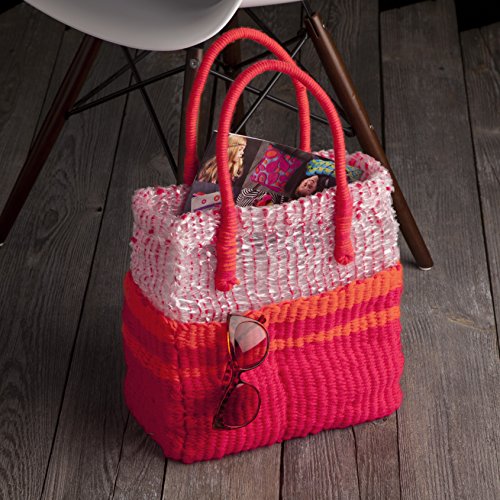 Weaving just got fast and fun! Loopdeloom is an ingenious new loom design with spinning pegs that speeds up the weaving process and makes it super simple. The winner of multiple prestigious toy and craft awards, it's simple to set up, it's simple to use, and it's surprisingly fast. So many things you can create, so many beautiful possibilities. Make anything from small basic potholders to large complex items with intriguing patterns. Weave purses and cell phone cases, scarves, wraps, baskets, throws and more. You can weave items any length, and up to 7" wide using one loom. Connect two or more looms together to weave wider items with no seams - genius! Say goodbye to traditional looms, we're putting a new spin on weaving! Kit includes 1 spinning peg loom and 120 yards of yarn to get you started.
