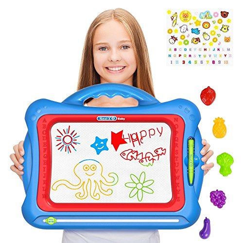Kids will have hours of colorful drawing borad for kid, mess-free fun with this NextX Doodle Pad. With a large easy to use screen, 5 fruit stampers, and attached pen, budding artists will have hours of fun discovering their own creativity and building confidence as little painters and drawers. NextX is also a perfect my first learners tool. Teach numbers, the alphabet, and colors whilst having hours of fun with your children.