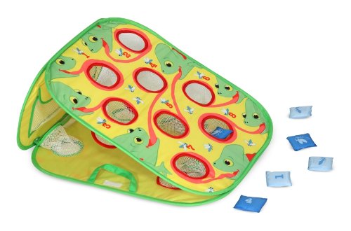 Catching "flies" with an open mouth is the happy task of Verdie Chameleon! A double-sided bean bag toss game provides two challenging ways to play. Six bean bags team with this colorful target to increase hand-eye coordination, number recognition and counting skills Dimensions: 24.5" x 20" x 0.75" Assembled