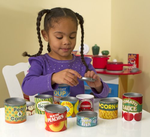 Stock a pretend pantry with this collection of lidded cardboard play-food cans and you'll have all the ingredients for colourful, imaginative grocery-store play. Open and close, fill and stack, sort and match the canned food toys, this set has a pretend-play flavour for every taste! Recommended for 3 years +