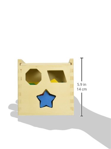 This ultimate shape sorter features 12 chunky, vibrantly colored shapes that make a satisfying "clunk" as they drop into the natural-finish hardwood cube. Then open the lid, take them out and start all over again! A classic educational toy for toddlers. Extension Activities: More Ways to Play and Learn: Ask the child to build a tower with the blocks. Help the child become familiar with the shapes and colors by identifying them as the child stacks the blocks. Encourage beginning counting skills by asking the child to count the blocks with you. Repeat the activity until the child is familiar with the numbers one through twelve. Once the child is familiar with the shapes and colors, ask the child to hand you a specific shape or color block. Dimensions: 5.5" x 5.5" x 5.5"