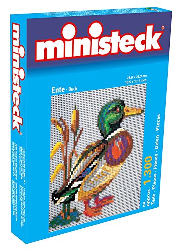Plug pictures contains 1 plate 26.6 x 33.3 cm, approx. 1350 ministeck stones, 1 lever for peeling the stones from the plate, 1 picture hanger and a plug-in template