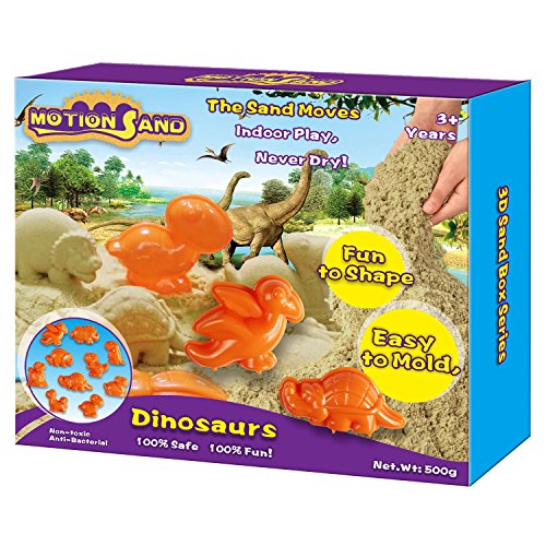 Have endless hours of fun with this deluxe playtray playset, creating brilliant sand shapes or create your own sculptures. Motion Sand® is the squeezable sand where you can FEEL the fun! Pack it, pull it, shape it and love it, Motion Sand is so incredible you can't put it down. It's kinetic - meaning it sticks to itself and not to you! It's easy to shape and mould and flows through your fingers like a slow-moving liquid, but leaves them completely dry. Kinetic Sand stimulates children's creative skills allowing them to create anything they can imagine. It never dries out and is gluten free. This soft and stretchy sand easily cleans up while delivering non-stop fun! It's squeezable sand you can't put down. The deluxe playtray playset includes Motions Sand®, 10 dinosaur moulds and play scene tray. For ages 3 years and over. Motion Sand® is a registered trade mark of ProActive Distribution.
