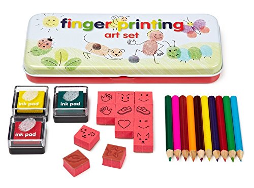 Fun art at your fingertips! Your fingerprints are unique. Turn them into coloured creatures, flowers and characters. Add faces and features with rubber stamps. Create personalised greetings cards or tiny works of art. Contents: 4 coloured ink pads, 12 rubber stamps, 12 colouring pencils.