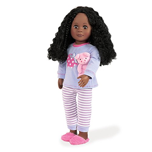 These purple pyjamas' are oh so comfy and comes complete with a piggy PJ top and stripped bottom, a stuffed piggy and a pair of pink fluffy slippers. Good night sleep tight. OG Outfitters catalogue included. We OG girls know taking care of this planet isn't just sweet, it's important. This package is made from recycled materials, is 100% recyclable and is printed with soy-based inks. For every Our Generation doll, outfit or accessory you buy, a portion of sales goes to Free The Children's Power of a Girl Initiative to help provide girls in developing countries an education--the most powerful tool in the world for escaping poverty. Box Contains 1 piggy pj top1 pair of striped pj pants 1 plush piggy 1 pair of pink slippers Doll sold seperately.