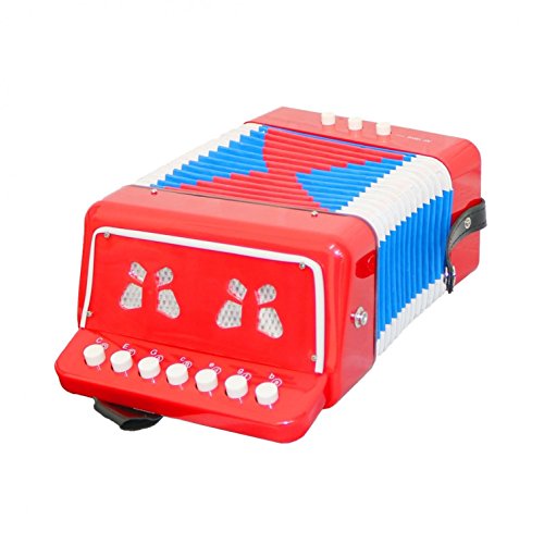 7 Keys 2 Bass Children';s Red Toy Accordion Musical Instrument Indulge your kid';s musical side with our amazing seven key Accordian! This simple to play traditional instrument is a scaled down version of a full size accordian and works the same - teaching your children real musical skills as they play! It';s tough plastic exterior is fitted with heavy duty sprung buttons and a super-durable canvas bellows meaning that even the most ';enthusiastic'; player will enjoy many years of use from this quality instrument. The Children';s Accordian also includes instructions and sheet music making it easy for even a beginner to make beautiful music! Product Specification: Size: 18 x 10 x 16cm Weight: 700g EN71 CE Certified